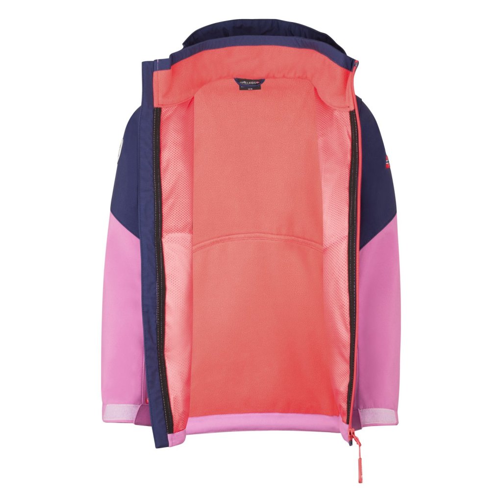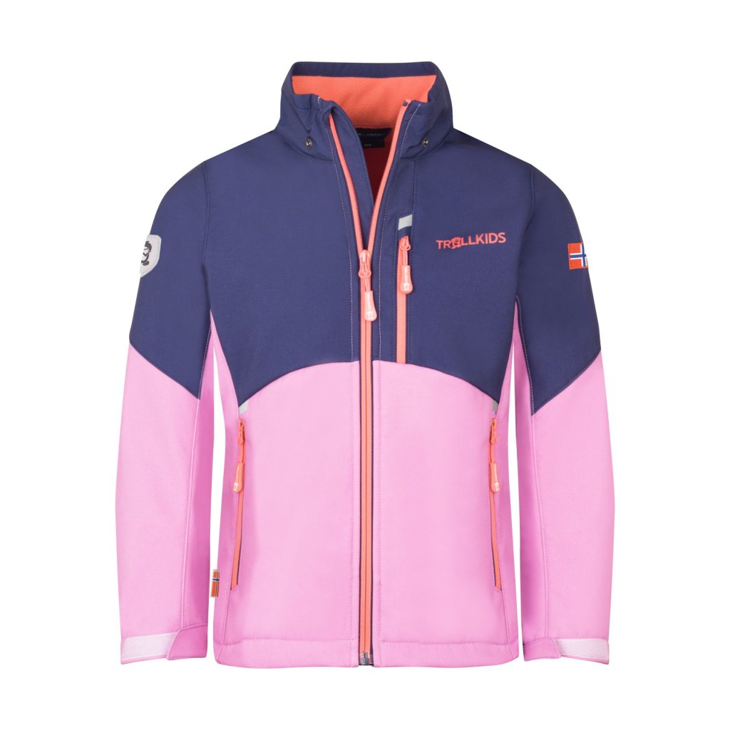 DĚTSKÁ DÍVČÍ ZATEPLENÁ SOFTSHELLOVÁ BUNDA TROLLKIDS BALESTRAND, DEEP VIOLET / LIGHT VIOLET / CORAL PINK