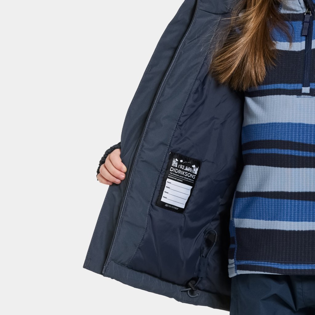 Bunda má rostoucí systém Didriksons EXTEND SIZE. V rukávech je šev, jehož snadným vypáráním se prodlouží délka přibližně o 5 cm. Bunda tak vydrží 2 - 3 sezóny v závislosti na rychlosti růstu dítěte.