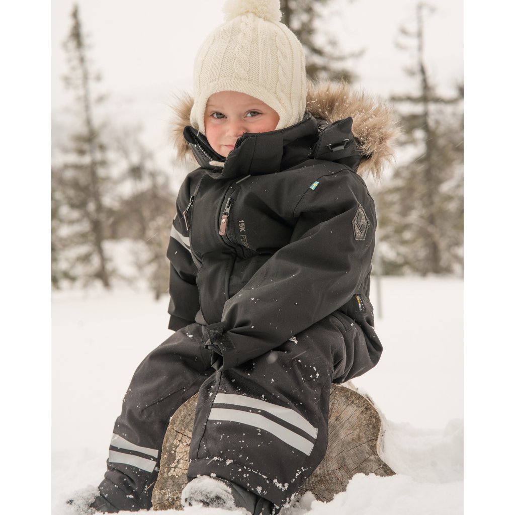 Kombinéza je prodyšná, větruodolná a nepromokavá, takže Vaše dítě může zůstat venku v dešti, sněhu a větru, aniž by promoklo a prochladlo. Dvě náprsní kapsy a dvě boční jsou se zapínáním na zip. Rukávy lze natavit suchým zipem. Kombinéza má nastavitelnou a odnímatelnou kapuci, mnoho reflexních detailů, stahovací šňůrku v pase a sněhové manžety na nohavicích překryté lemem nastavitelným suchým zipem. Umělý kožešinový lem na kapuci lze odepnout.
