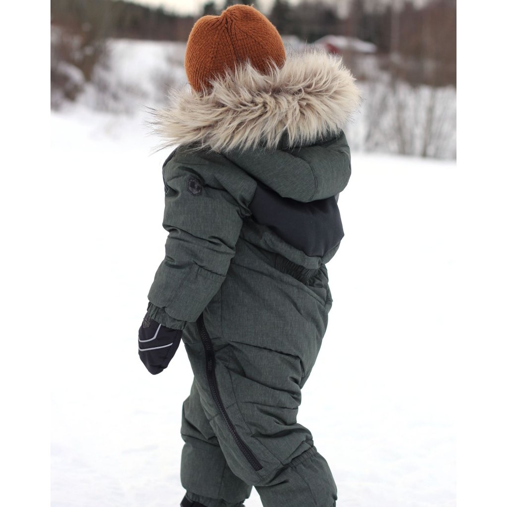 Kombinéza "Rocky" od značky Lindberg Sweden je nadýchaná a velmi teplá a je vhodná do zimního počasí pro děti, které poznávají svou první zimu. Má velmi jemnou podšívku po celém trupu a dva zipy pro snadné oblékání malých průzkumníků zimních radovánek. Kombinéza je ušita z odolného materiálu a vyniká nejen funkčními vlastnostmi a kvalitním zpracováním, ale také moderním, nadčasovým designem. Kombinéza je vyrobena z recyklovaného materiálu s impregnací BIONIC-FINISH® ECO.