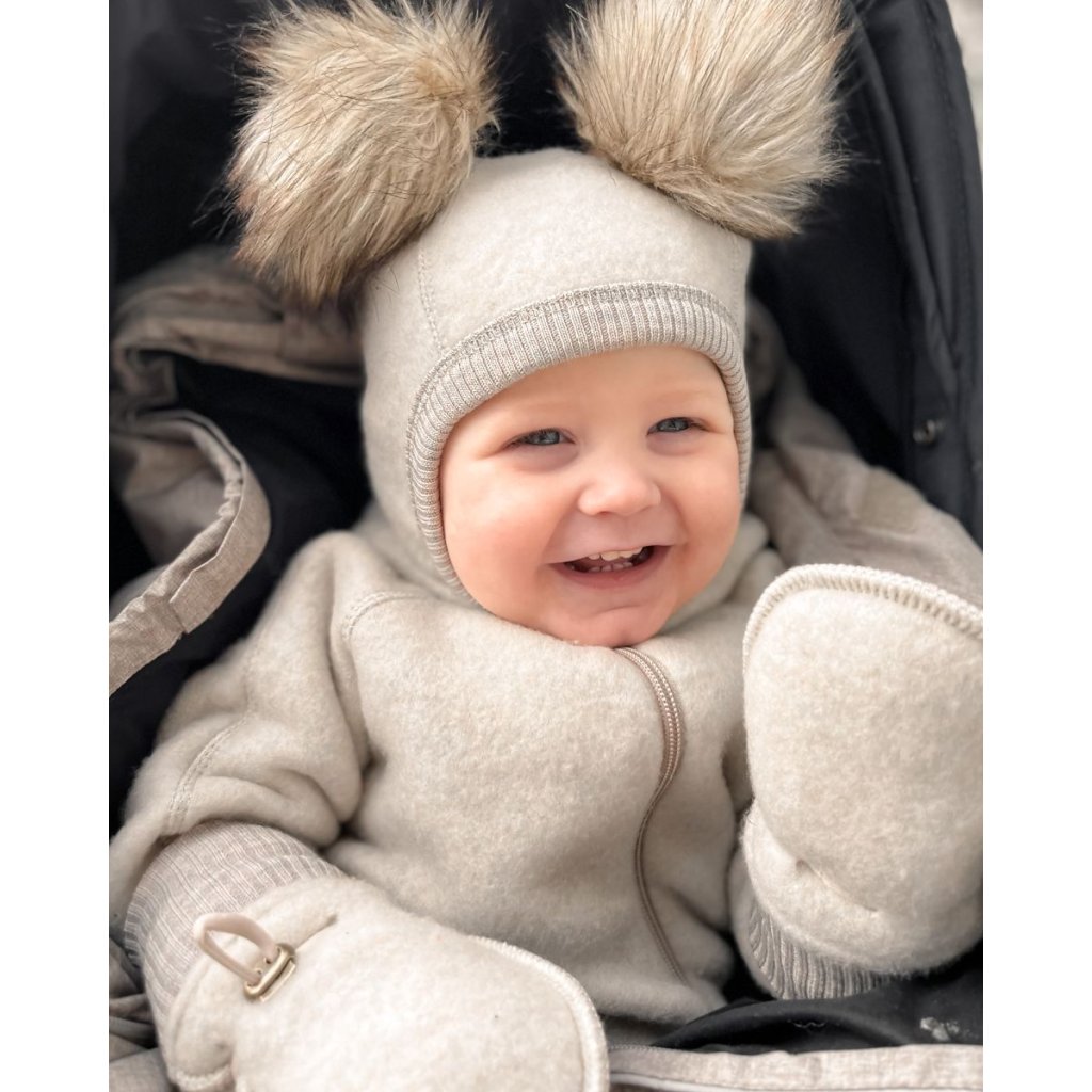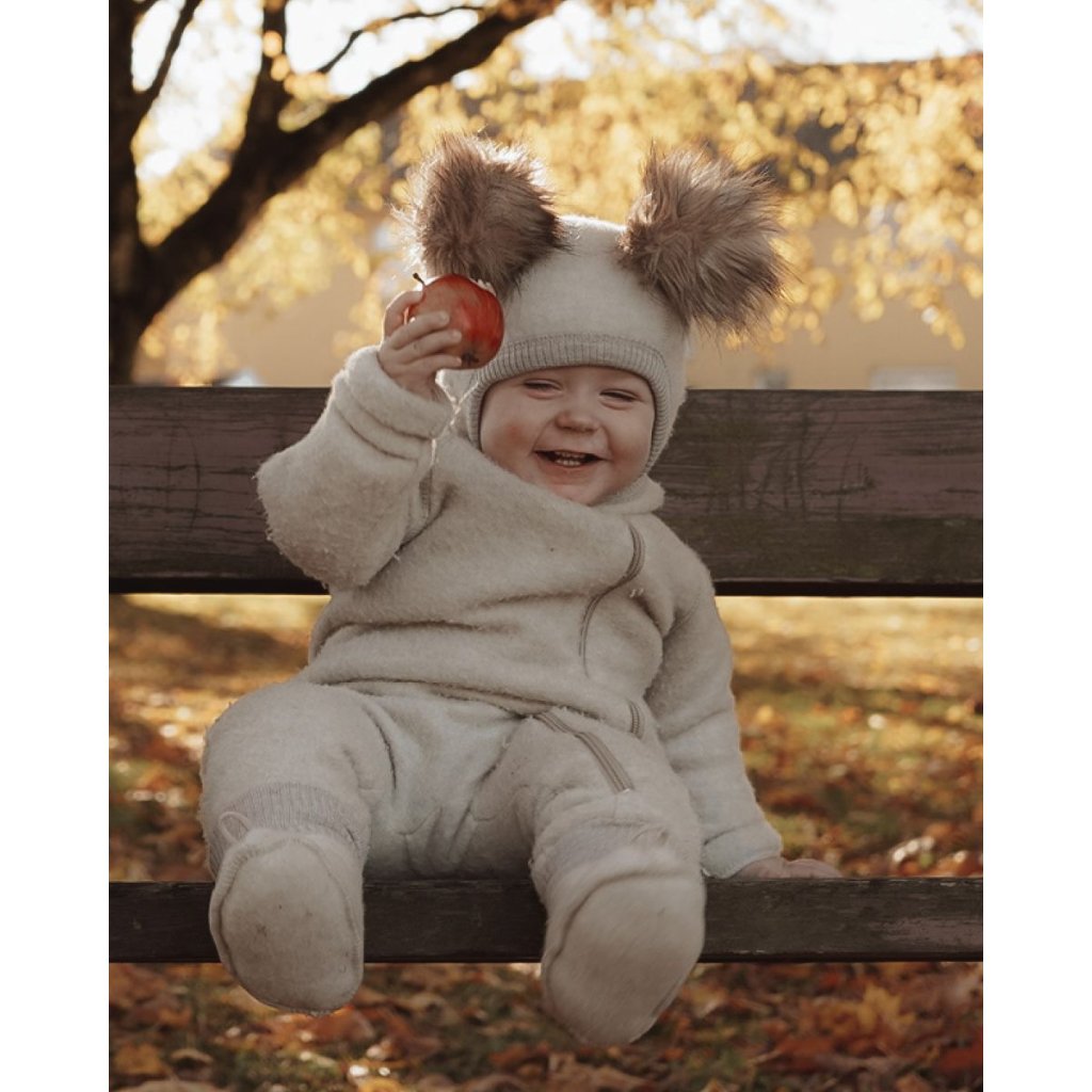 Dětská kukla Mikk-Line z česané MERINO vlny s bambulemi je rozkošná pohodlná. Pokrývá většinu hlavy a krku, takže je snadné udržet dítě v chladném a mrazivém zimním počasí pěkně v teple.