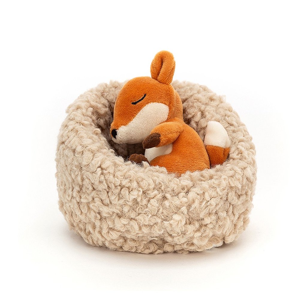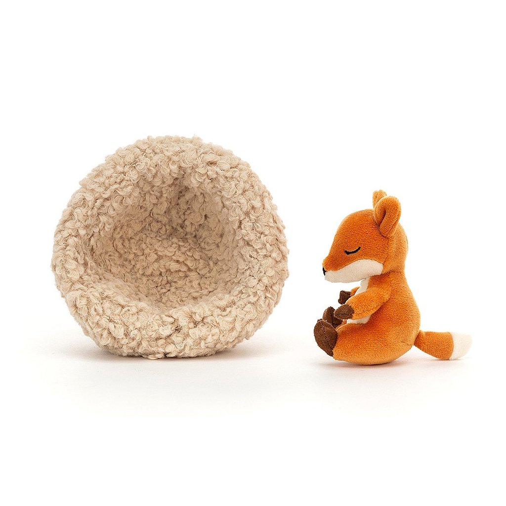 Pojďte blíž, hezky po špičkách a nakoukněte: naše lištička od Jellycatu tvrdě spí! Toto mrňavé roztomilé mládě se zázvorovým kožíškem si vytvořilo útulné hnízdečko barvy ovesných vloček. Tato ospalá lištička si podřimuje se sladkým výrazem na tváři a je úžasně přítulná!