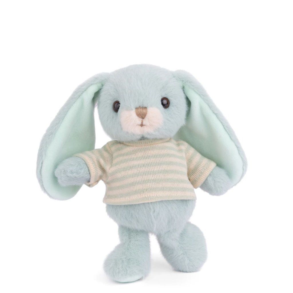 Plyšový králíček Bouncy Bunny od značky Bukowski Design je veselý a mazlivý kamarád, který přináší radost na první pohled. V jemném tyrkysovém odstínu a s roztomilým pruhovaným tričkem působí hravě a moderně – ideální společník pro dětská dobrodružství i klidné chvíle před spaním.