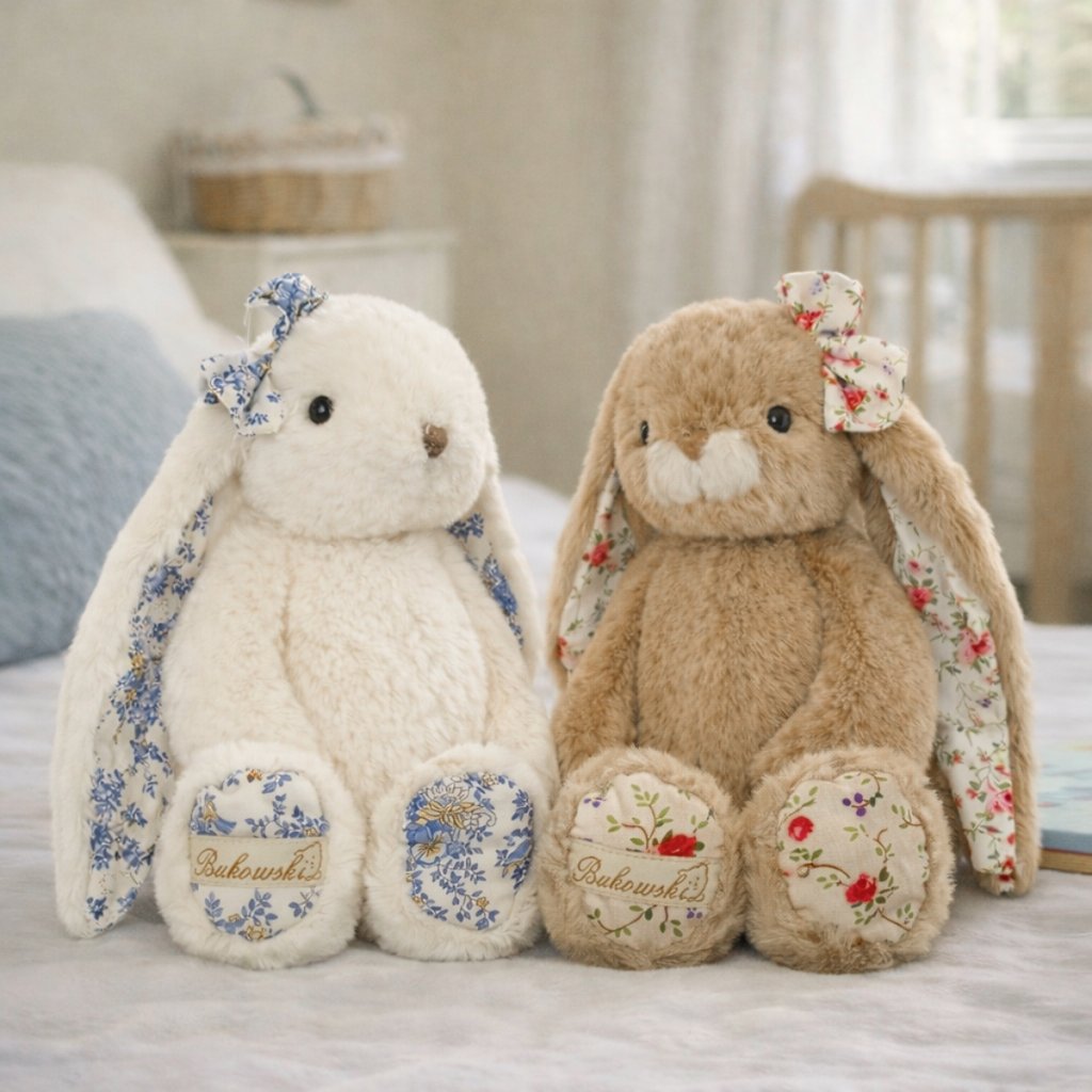 Králíček Pretty od značky Bukowski Design je úžasný mazlík. Tato plyšová společnice má dlouhé uši s kytičkovým vzorem, velkou mašlí na hlavě a hebký bílý kožíšek. Pretty touží po nové kamarádce a pomazlení.
