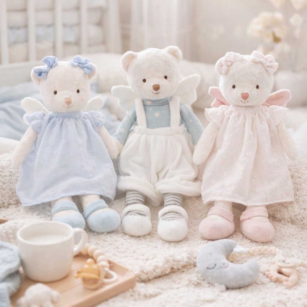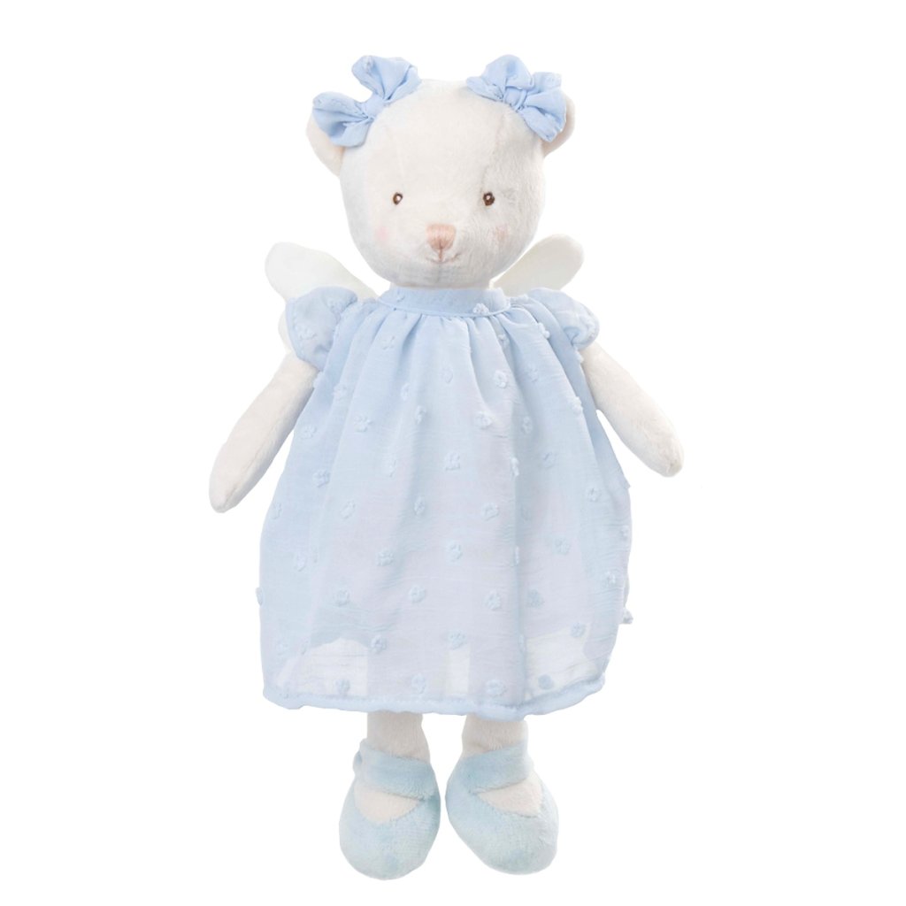 Plyšová medvědí slečna jménem Angelina od značky Bukowski Design je strážním andělem na plný úvazek, vždy připravena ochránit vás před každým zlem. V nádherných modrých šatičkách, s krásnými bílými křídly a dvěma mašlemi je dokonalou společnicí pro každou příležitost. Vezměte si ji všude sebou, přitulte se k ní, lásky má pro vás na rozdávání.
