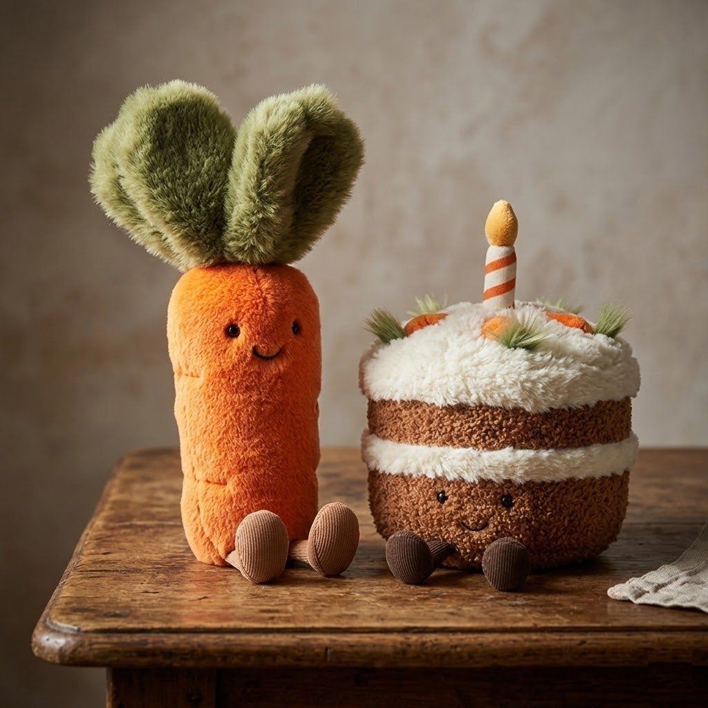 Mrkvový dortík Amuseables Carrot Cake je etalonem vzorného hostitele, obzvlášť když hodiny odbijí půlnoc. Půlnoční čajové dýchánky jsou jeho specialitou: delikátní sendviče, u svíček šeptaná tajemství a jeden (nebo rovnou tři) kousky jeho proslulého dezertu Pavlova.