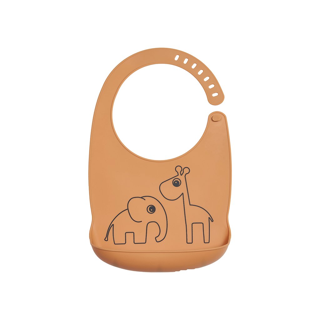 Praktický voděodolný silikonový bryndáček s jeleními přáteli Raffi a Elphee. Měkký a pohodlný i pro ty nejmenší děti s nastavitelným popruhem kolem krčku. Možno mýt v myčce.