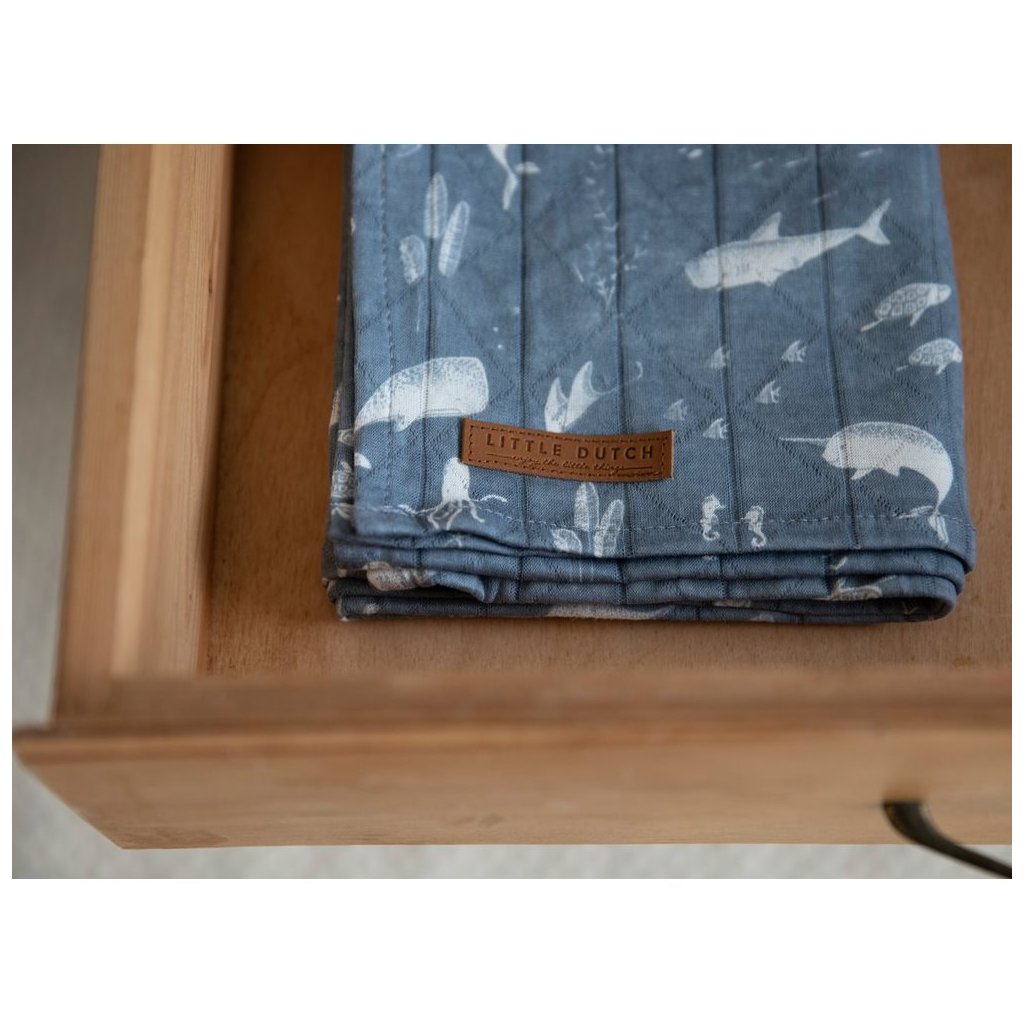Víceúčelová, mušelínová osuška z kolekce Little Dutch Ocean je vyrobena z měkké bavlny s vysokou savostí. Tkanina je rychleschnoucí, velmi odolná a prodyšná. Unikátní struktura tkaniny poskytuje luxusní styl a vzhled.