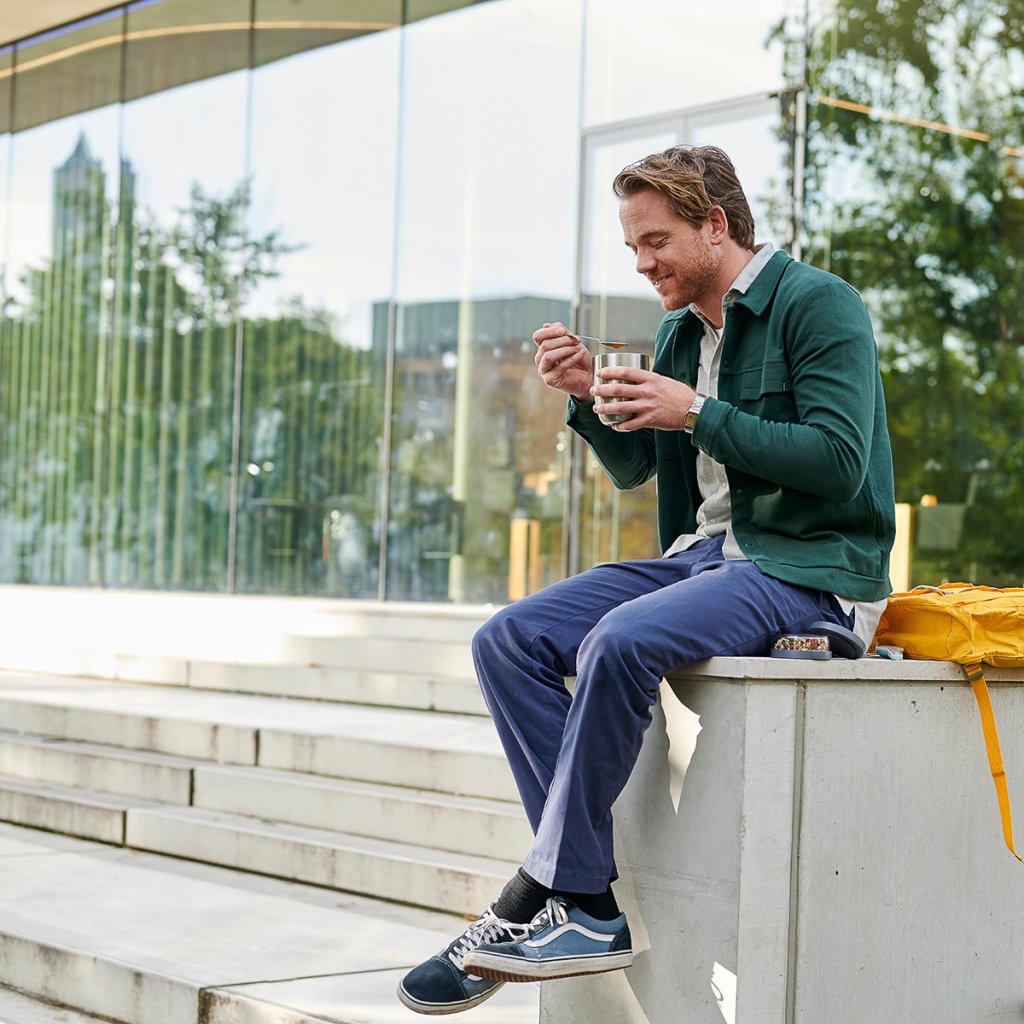 Jste každé ráno ve skluzu? Vezměte si snídani sebou v termosce na jídlo Mepal z řady Ellipse. Co takhle vychlazený jogurt s křupavým müsli? Oddělená přihrádka ve víku zajistí, že müsli zůstane hezky křupavé! Dvouplášťová nerezová termoska udrží váš jogurt vychlazený až do oběda! Snídani si můžete vychutnat ve vlaku nebo u svého stolu v kanceláři, stačí smíchat ingredience a je hotovo! Máte chuť na něco horkého, co by vás zahřálo během noční směny, přednášek nebo lekce jógy, ale nemáte k dispozici mikrovlnku? Žádný problém, ohřejte si doma polévku, nalijte ji do termosky a přidejte krutony do víka, kde zůstanou hezky oddělené. I o několik hodin později si můžete dát chutné teplé jídlo! Termoska udrží jídlo teplé po dobu 6–8 hodin (v závislosti na druhu, množství a teplotě vašeho jídla) nebo studené po dobu 12 hodin.